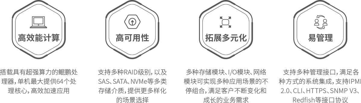 米兰milan电竞R721高密服务器是米兰电竞数码基于鲲鹏基础硬件推出的新一代高密度计算设备。其具备高效能计算、安全可靠与开放生态优势。